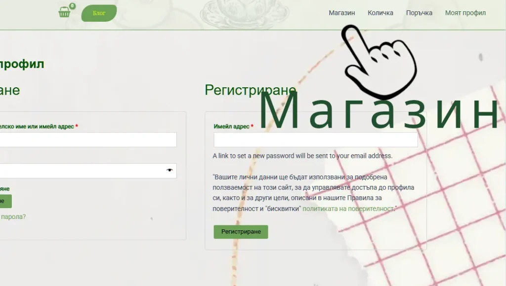 От глалвната страница влезте в магазина – само за регистрирани потребители.